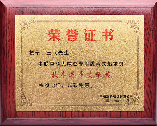 2017年度中联重科大吨位专用履带式起重机技术进步贡献奖